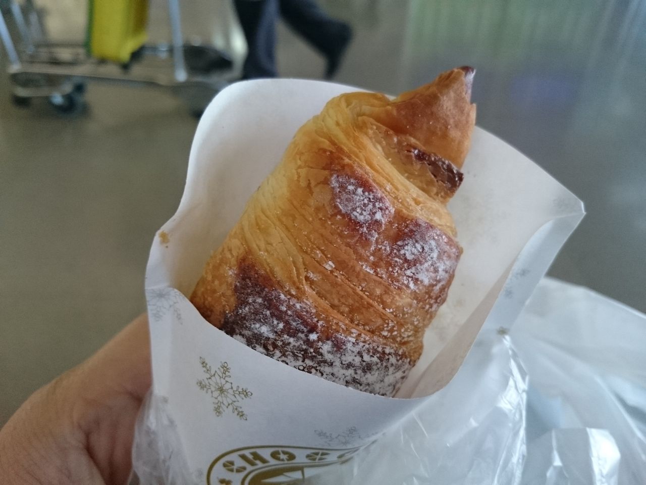 チケットをもらい搭乗手続きまでに時間があるので、ドトールでお茶を飲んだり、やっぱり小腹がすいたとサンマルクのホワイトチョコクロを食べてみたり・・・。