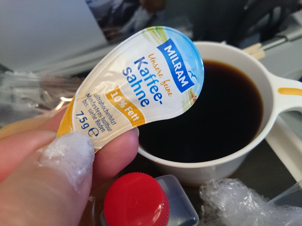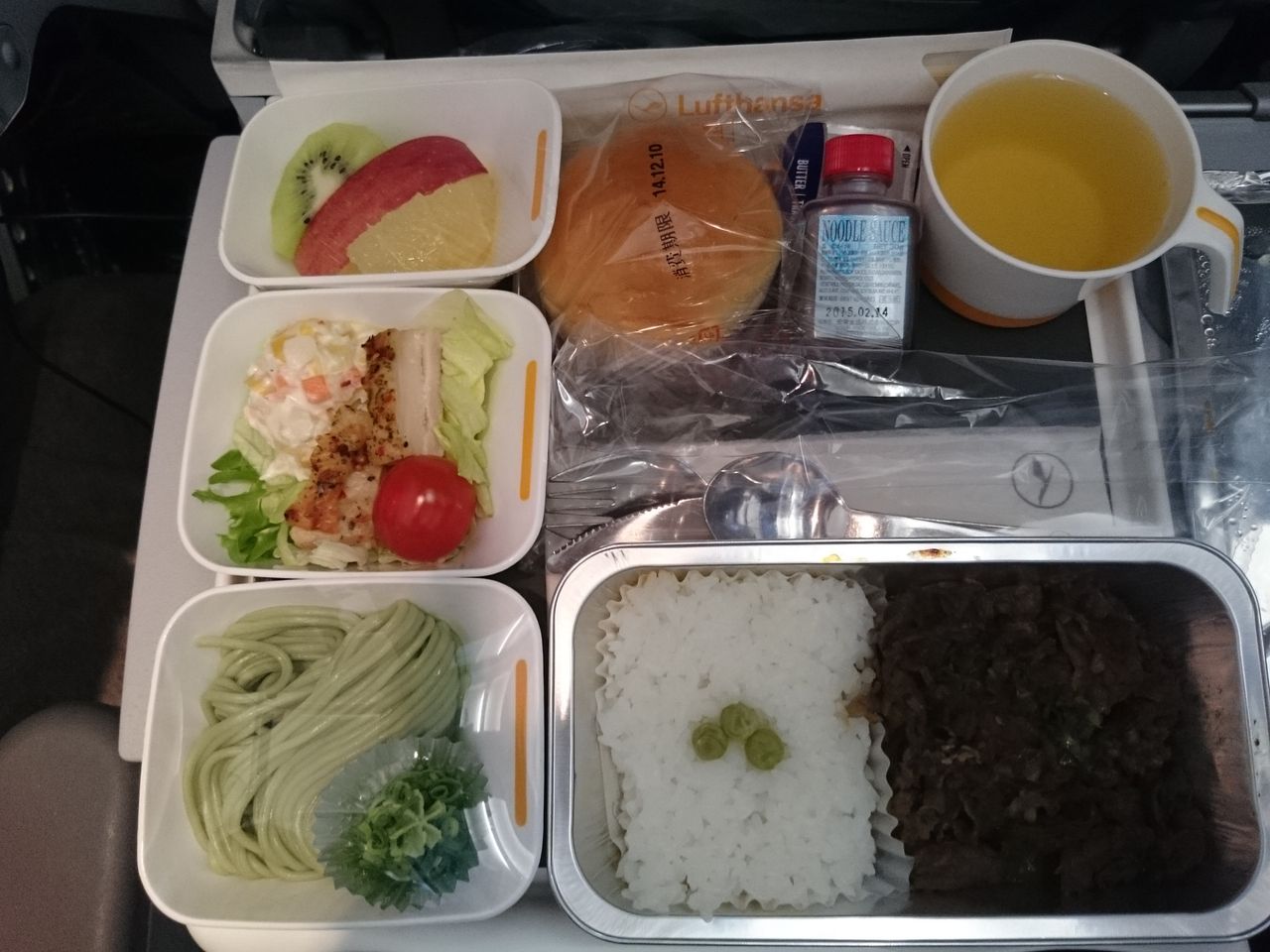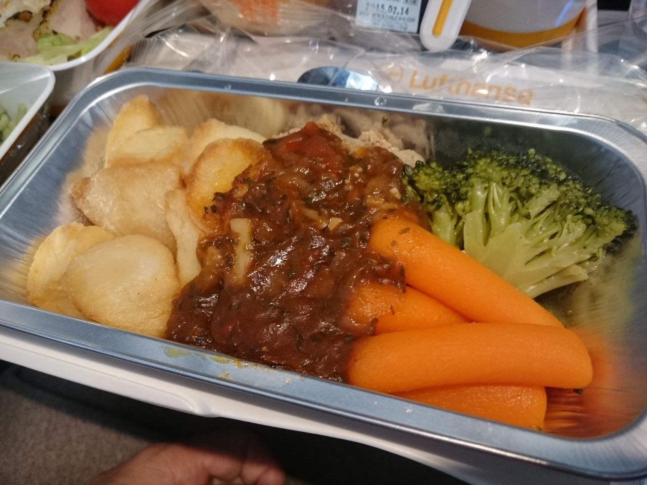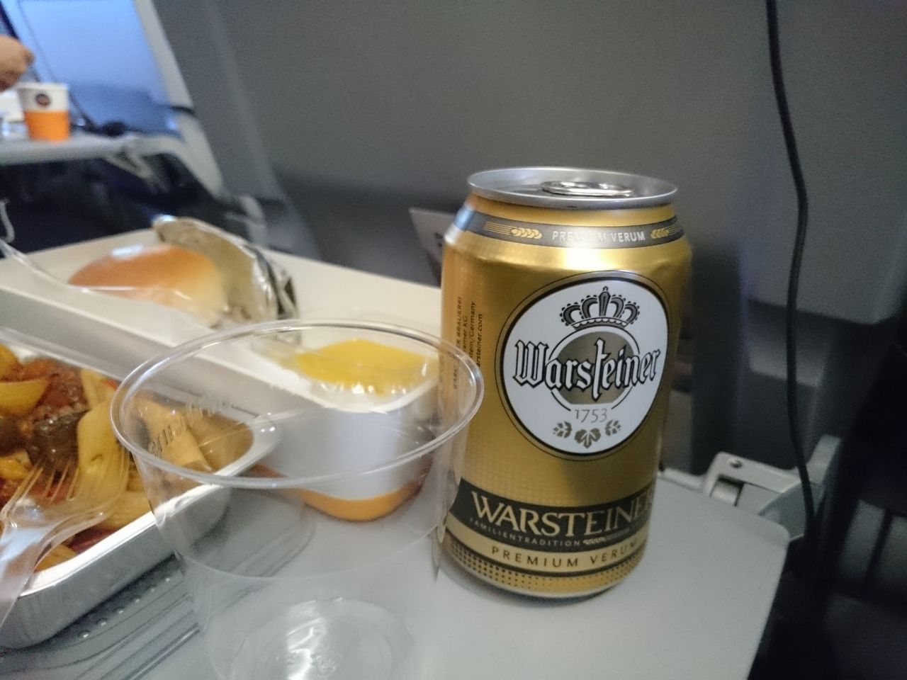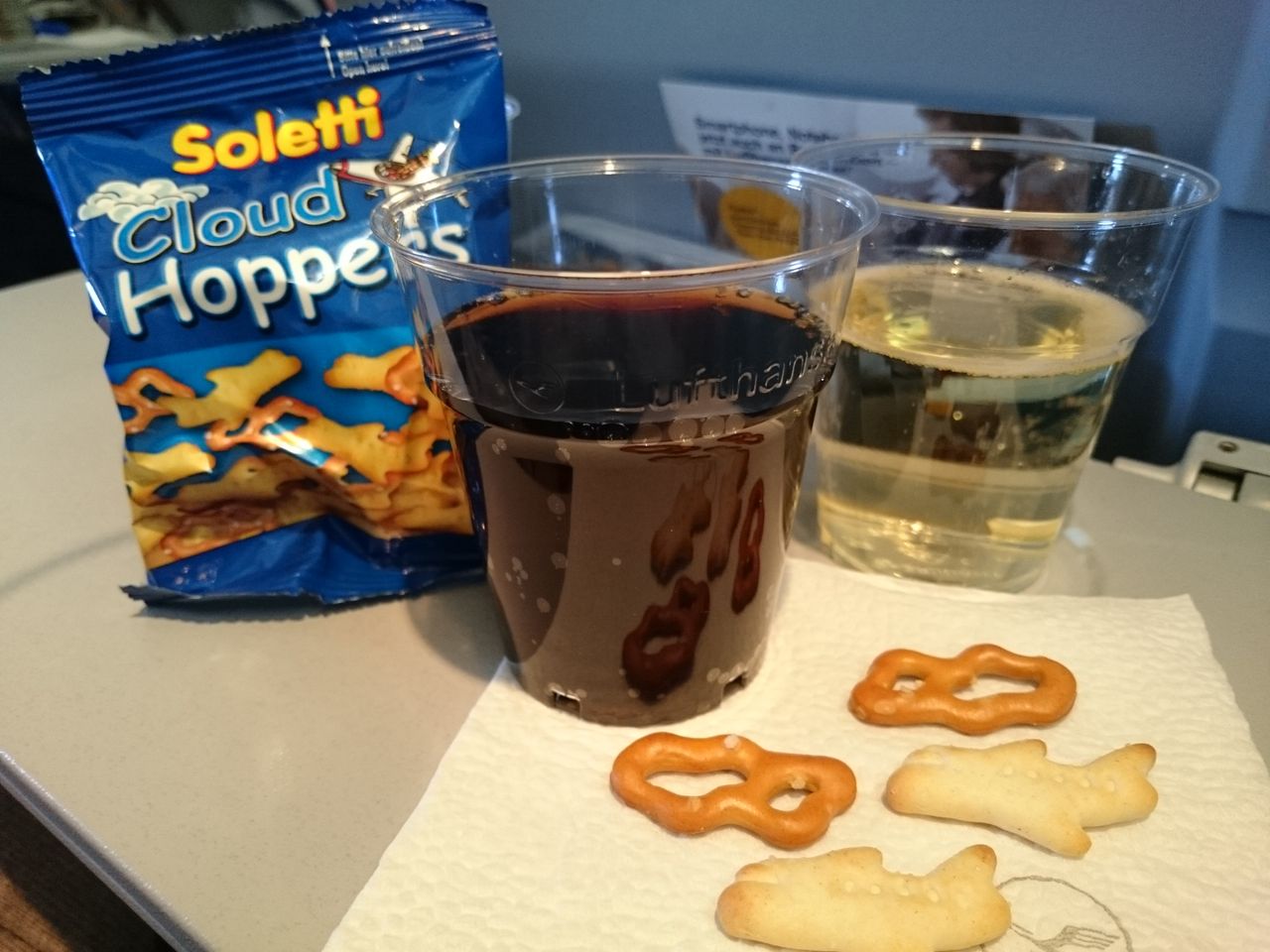 goziちゃんはビールをもらってました。せっかくのルフトハンザ航空ですもの、ドイツビールを飲まなくてはいけません。飲めない私は損してる気分です。