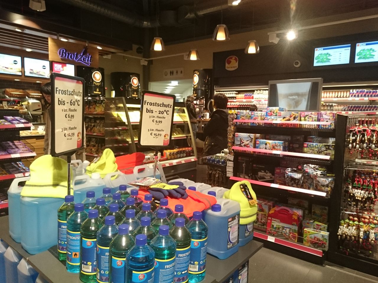 ストラスブールまではライン川で国境を超える3時間の移動のため、途中トイレ休憩をはさみました。トイレは有料なので、小銭を作るためちょこっとお買い物。私はこの時利用しなかったけど、明日からに備えてくずしておきました。