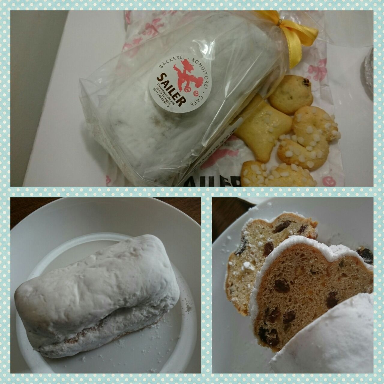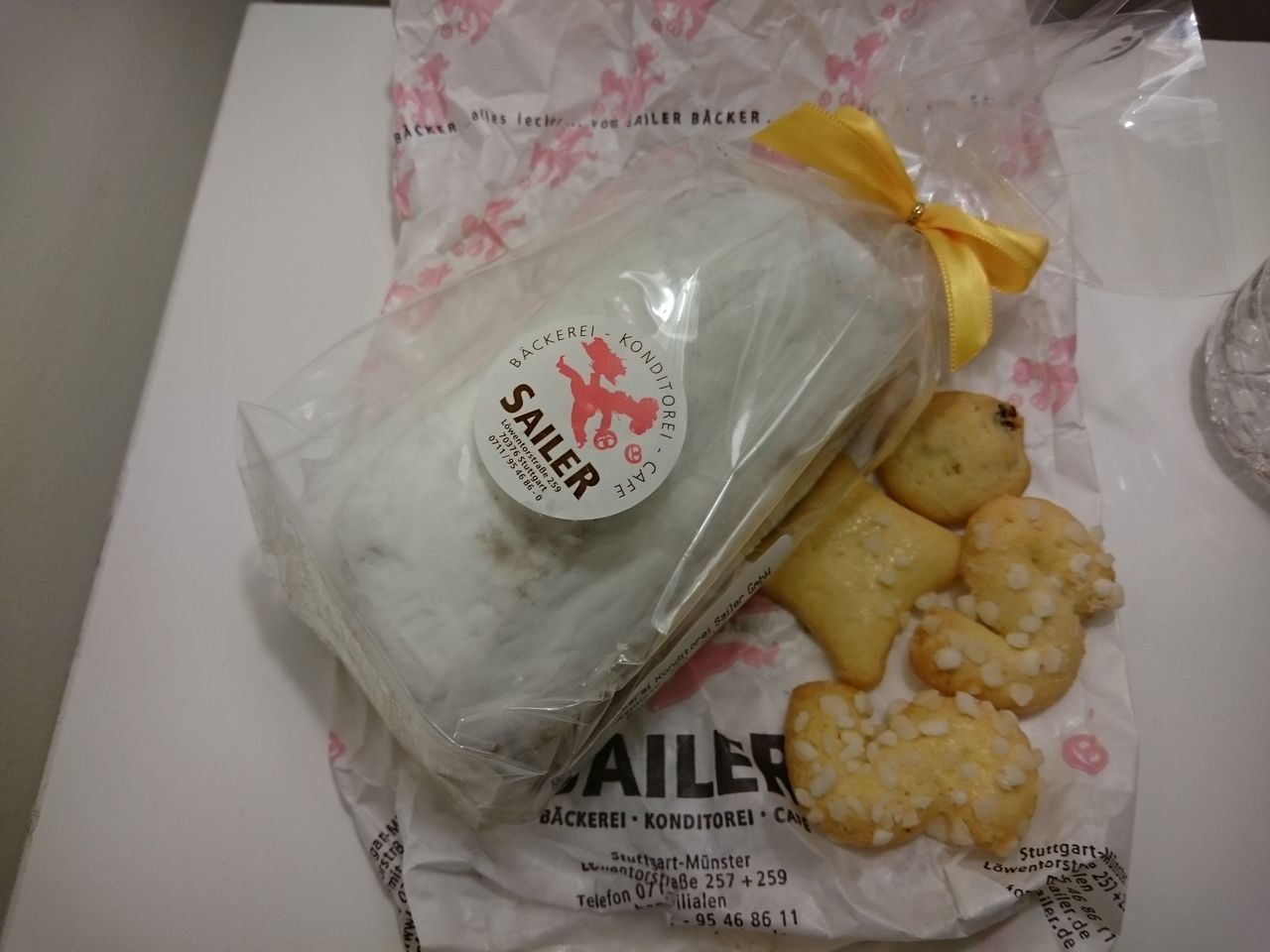 シュトゥットガルトのマーケットで買った小さなシュトーレン。おまけのクッキーは今一つ・・・。