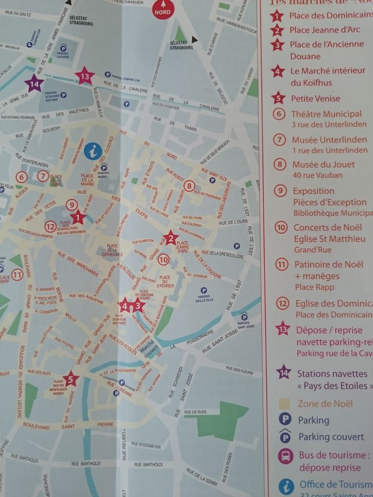 ちょうど真ん中の交差点あたりにインフォメーションがあり、入って地図を探していたら、添乗員さんが登場。聞いてくれて、カウンター内部にあったカラーの地図をもらってくれました。