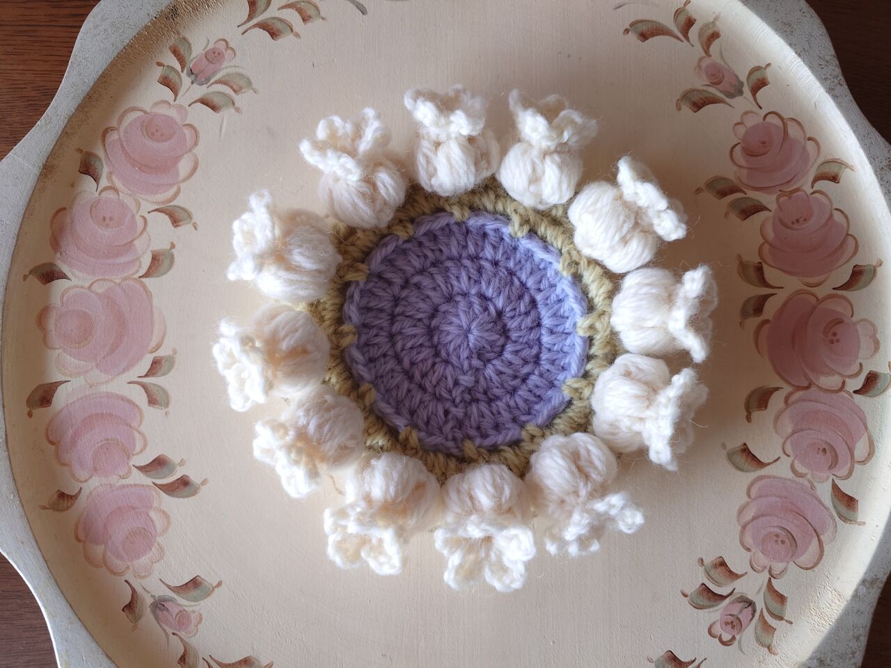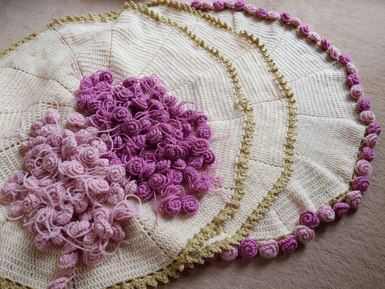 大きい部分は持ち運びにかさばりますが、バラならちょこちょこ編めて、持ち運びもキュッと詰めて楽ちん🎵