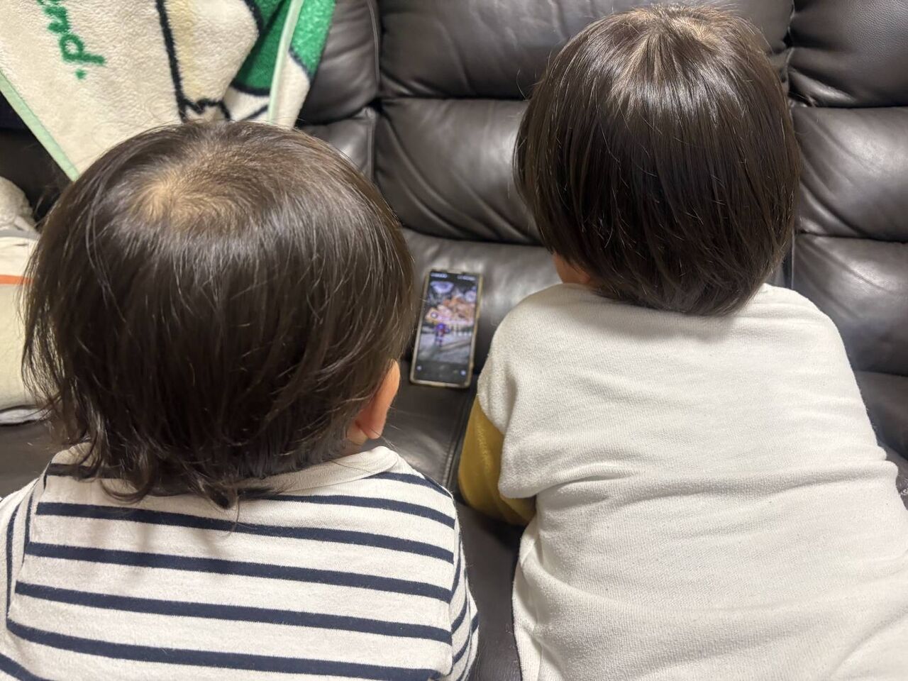 もう1回もう1回と何度もミャクミャクのクリスマスを見ていました。