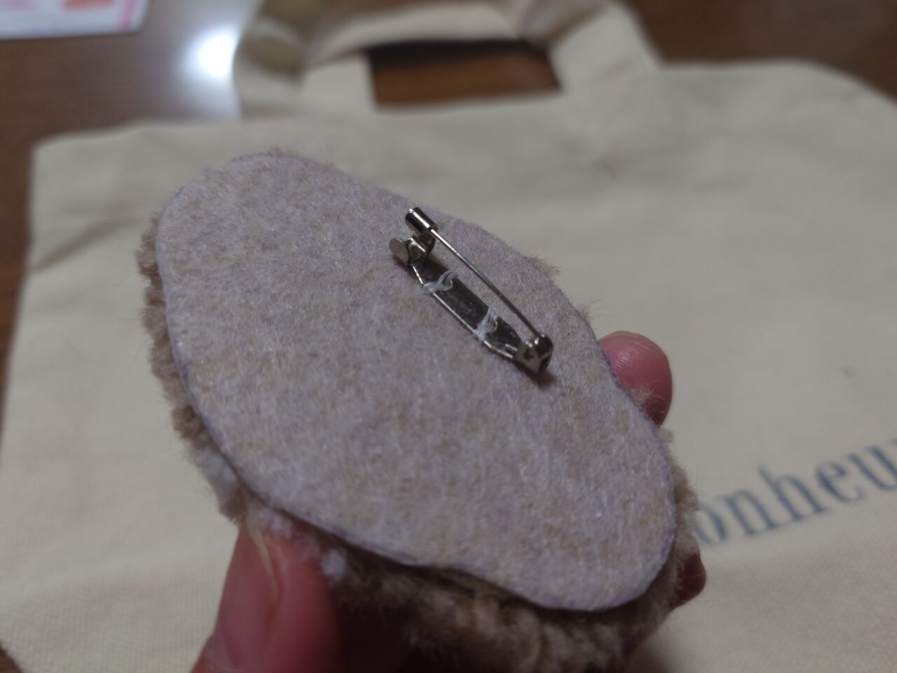 裏側に硬いフェルトをはり、ピンをつけてます。