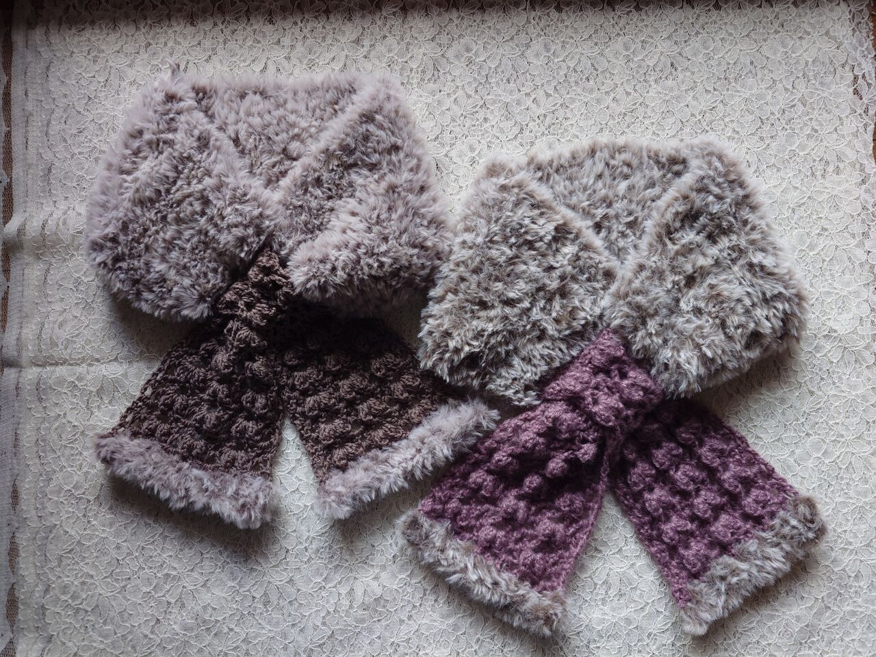 セリアの安い毛糸でも、フェイクファーのように見えて、とてもあたたかいです。