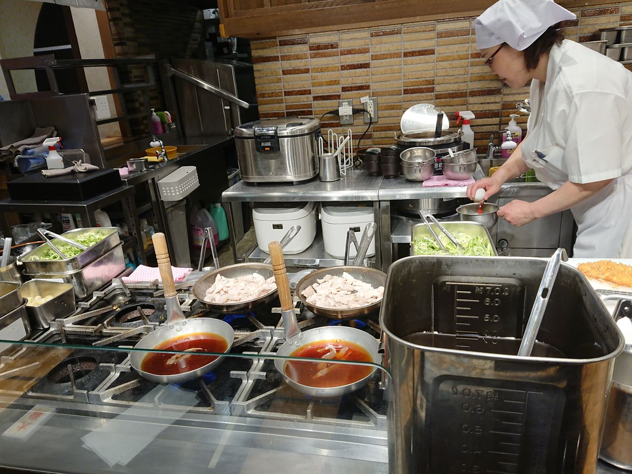 並んでいる目の前の厨房で、とんかつをあげ、かつ丼も作られていきます。