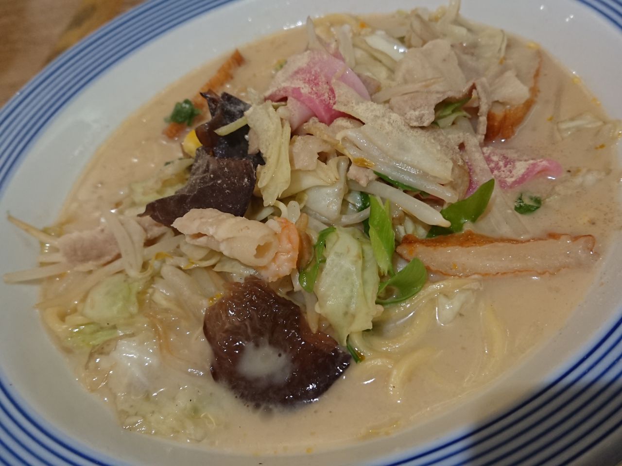 もやしや白菜にんじんなどお野菜がいっぱい。エビやかまぼこも入ってました。