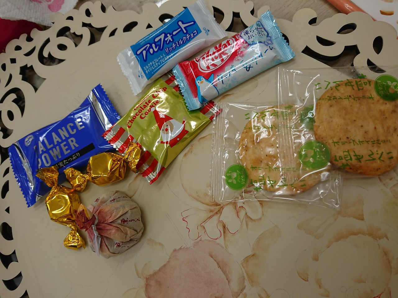 そして、お昼休憩のあいだにお菓子交換が行われ、机の上はお菓子でいっぱいになるのでした。