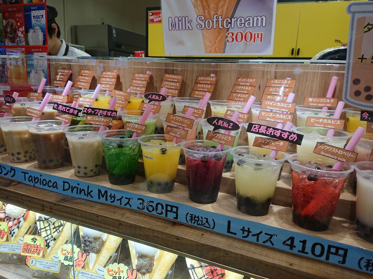 タピオカドリンクって、ジュースだけでなく、カフェラテやミルクティーもあるなんて知りませんでした。クレープもタピオカもとても種類が豊富です