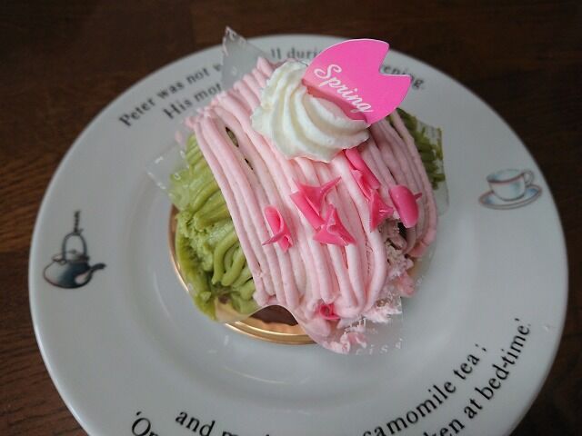 でかにぃは、春の桜と宇治抹茶のモンブラン¥378。