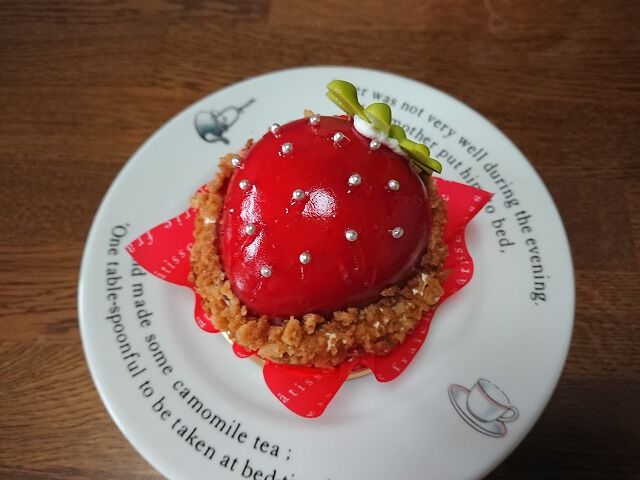 まっかな苺型ムースがタルトの上にのってます。