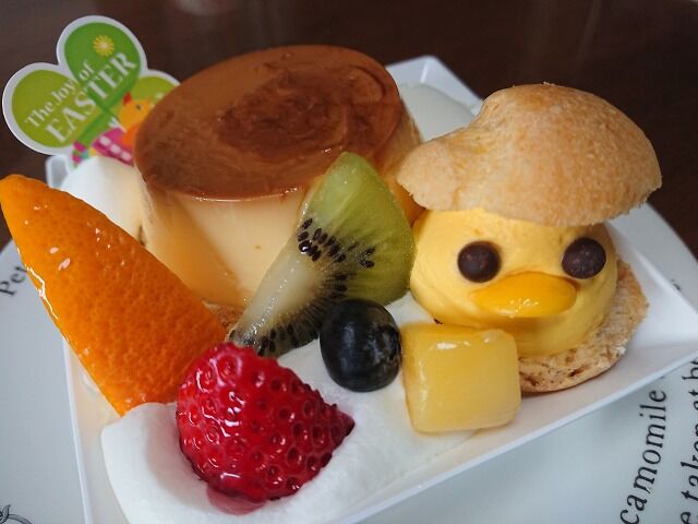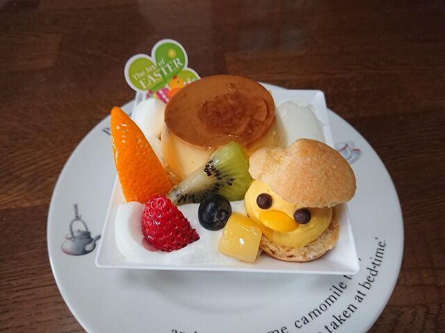 そして、ちびが選んだのは、イースターのプリンアラモード¥345。
