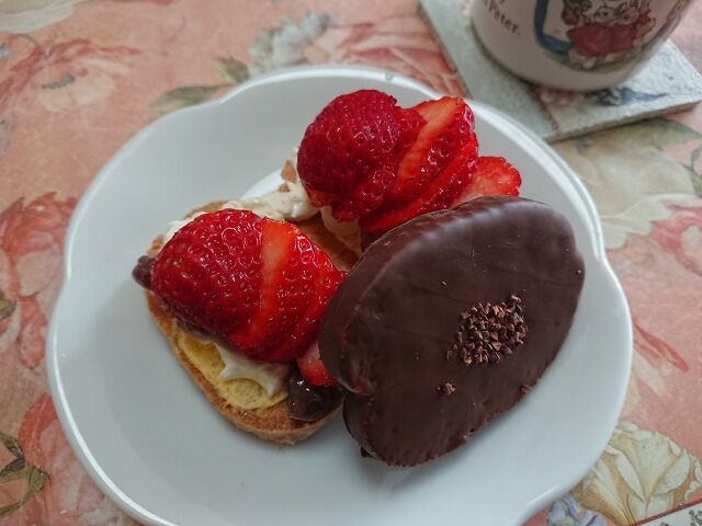 今日は、シャトレーゼのプレミアムショコララスクをいただいたので、用意していたデザートと一緒にお出ししました。
