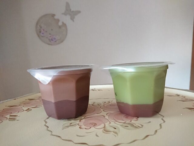 ショコラカフェプリンと抹茶ミルクプリン(各¥151税込み)。