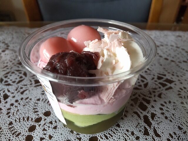 職場近くのファミマに行ったら、スフレプリンばかり2段にわたって並んでたそうで、今一つな感じだったので、「あんこと黒みつのパフェ」だけ買って、セブンイレブンへ移動。他3つのスイーツをセブンで購入したそうです。