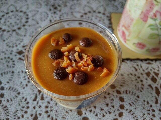 上から、キャラメルソース、キャラメルムース、りんごムース、りんごのコンポートと4層になっています。