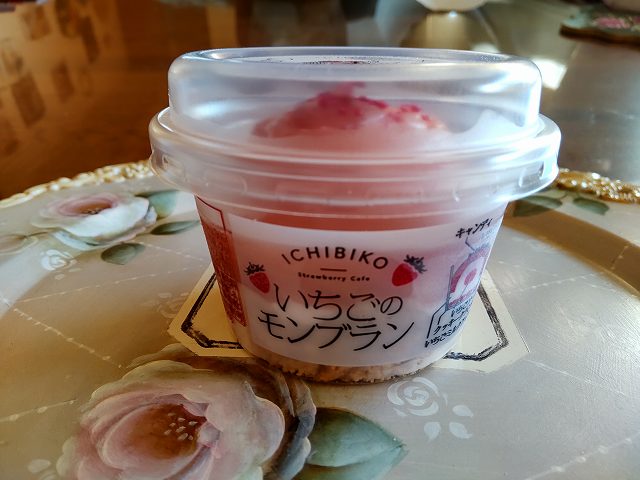 コンビニでみつけた「いちごのモンブラン」(アイス)のイラストがかわいくてついつい買ってしまいました