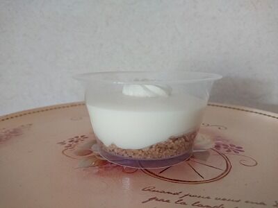 クラッシュしたビスケットの上に、レアチーズムースがのってます。