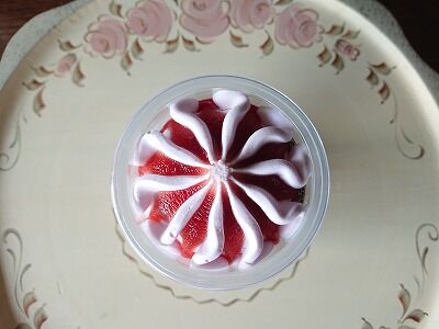 なめらかなゼリーの食感と歯ごたえのあるつるっとした寒天の食感の違いがおもしろくて、工夫してるな~!て、思いました・・・