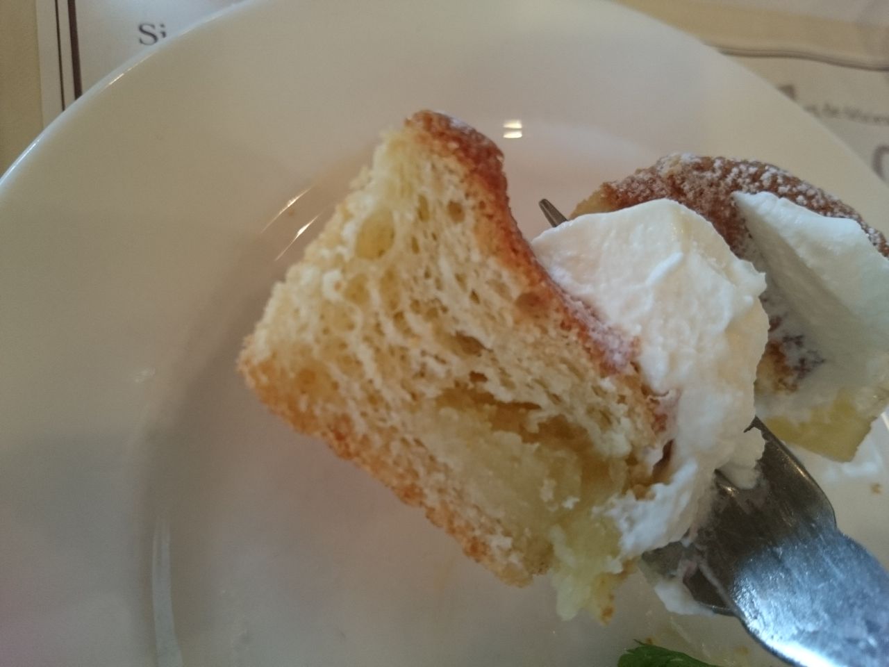 ふわふわだけど、少しパサつきそうな感じがしつつ、生クリームやカスタードクリームでしっとり感が出ています。
