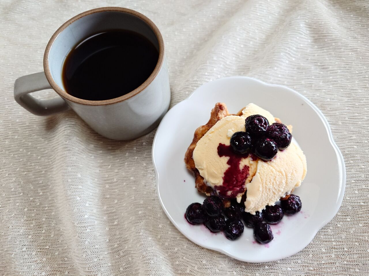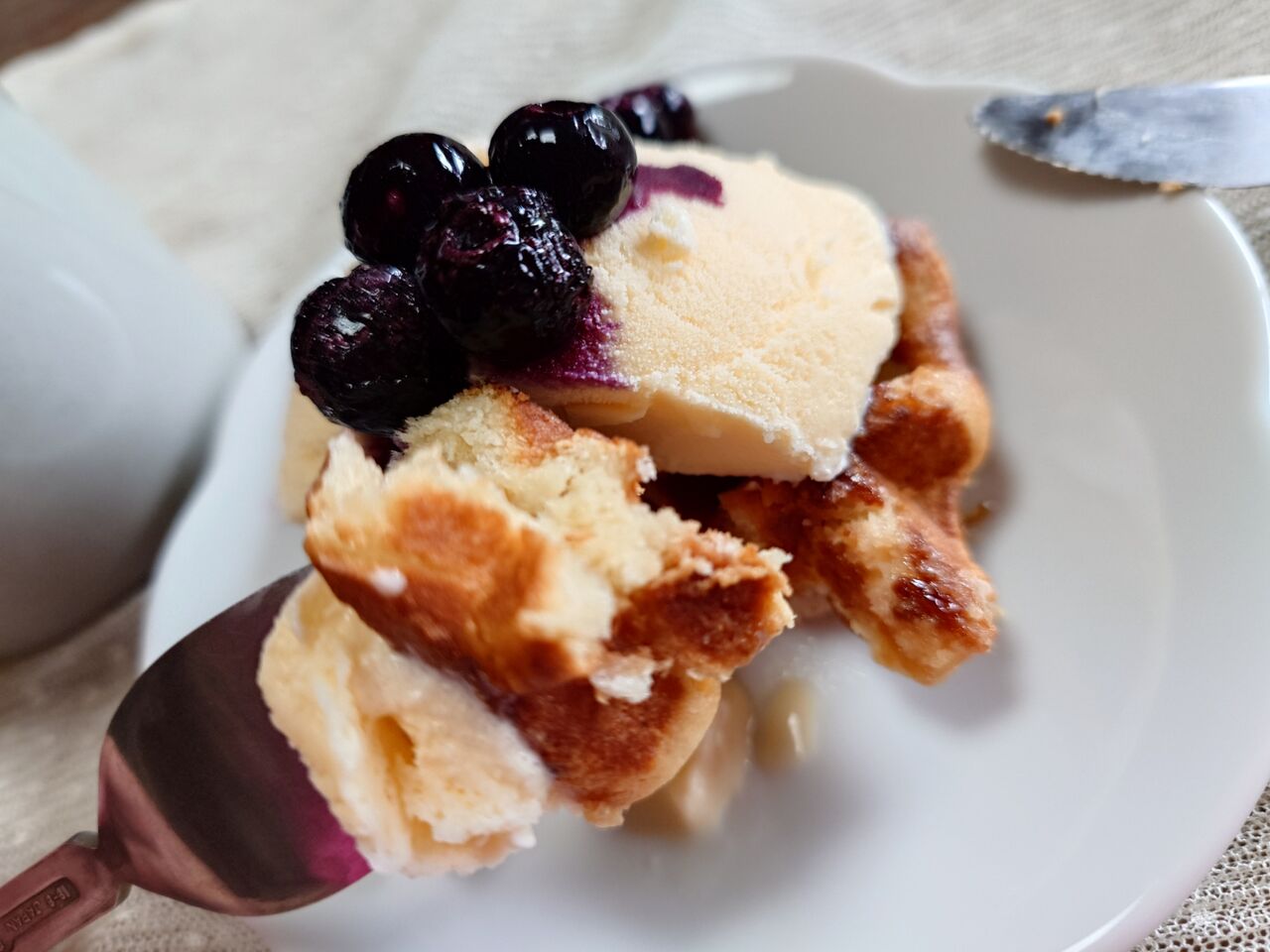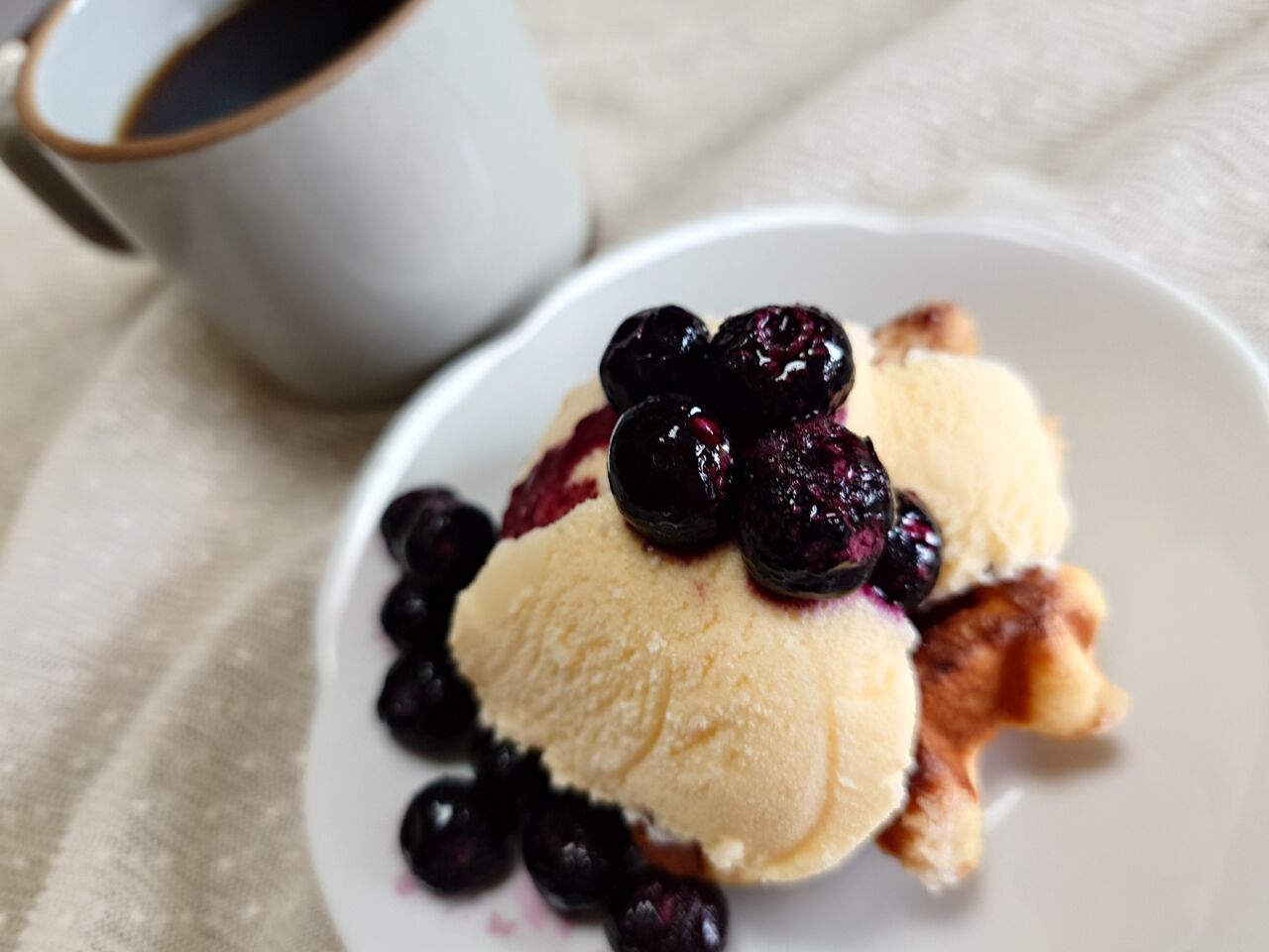 思い切ってお買い物に行ったご褒美なので、アイスクリームとブルーベリーものせました。