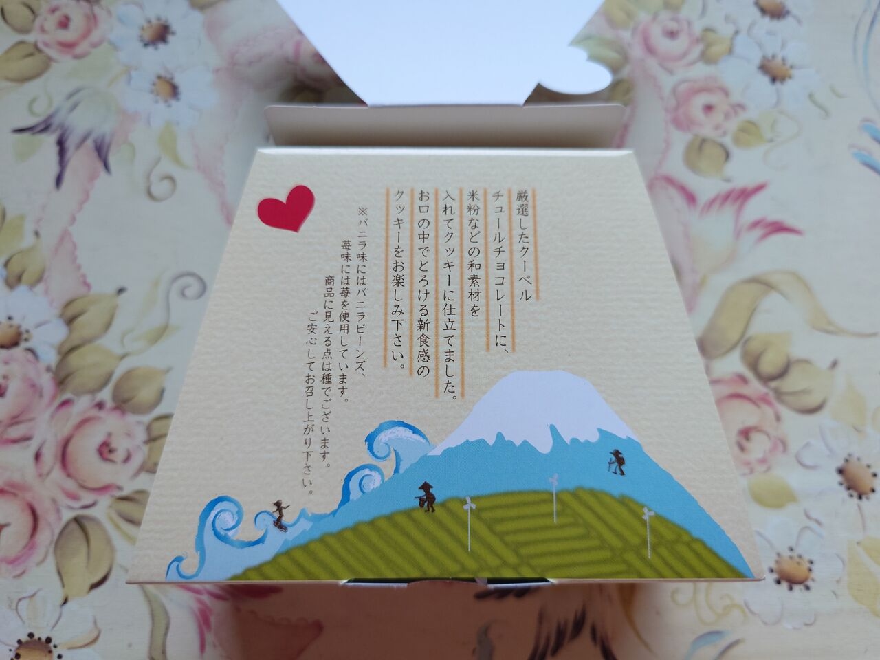 このパッケージ、表からみても富士山から日の出の様子でかわいいのに、ふたを開けたら静岡県を象徴する富士山(登山者)とお茶畑(茶摘み)、そして、富士さんを臨む太平洋(サーフィン)ってイラストが可愛すぎます。