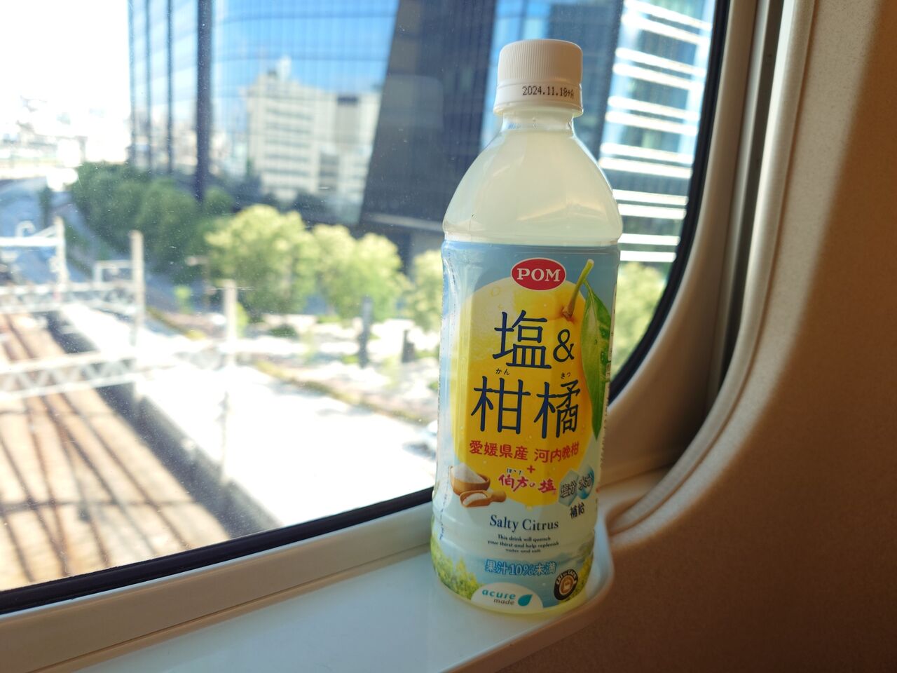 新幹線カフェは、スッキリしたものが飲みたくて、POMジュースの「塩&柑橘」。
