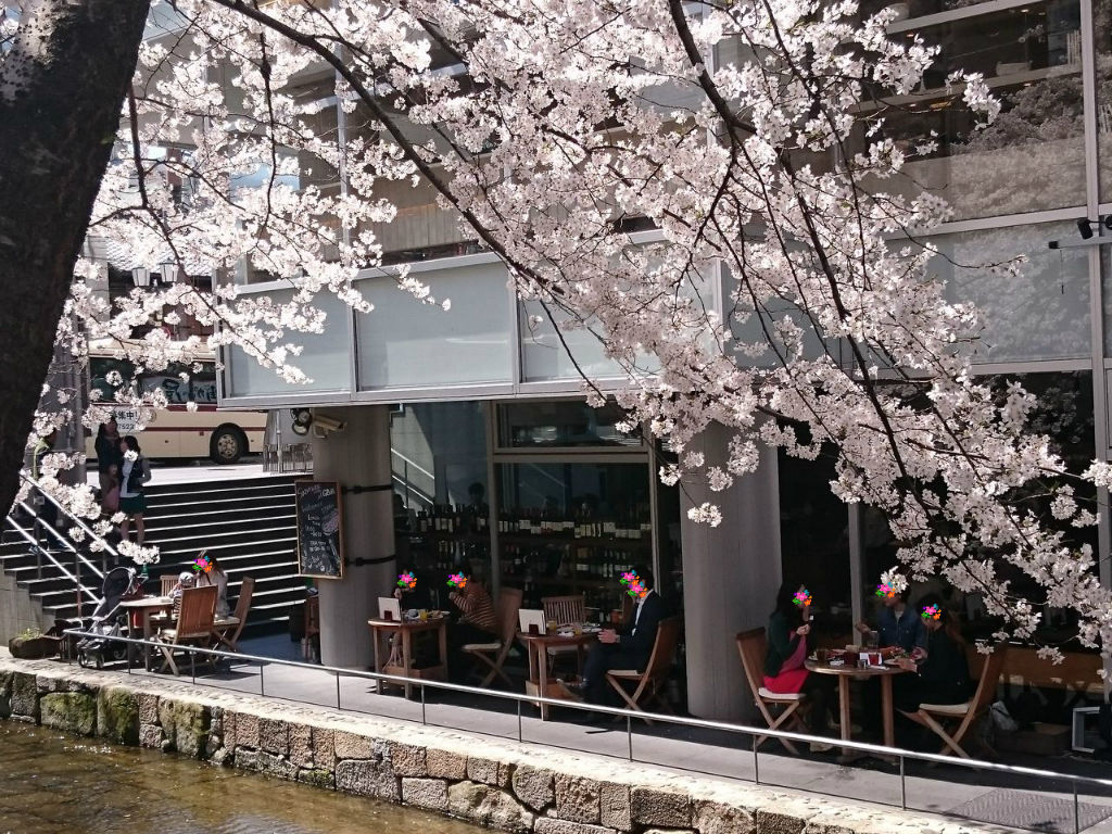 ほら、お店の真ん前が高瀬川、そして桜の花というわけです。