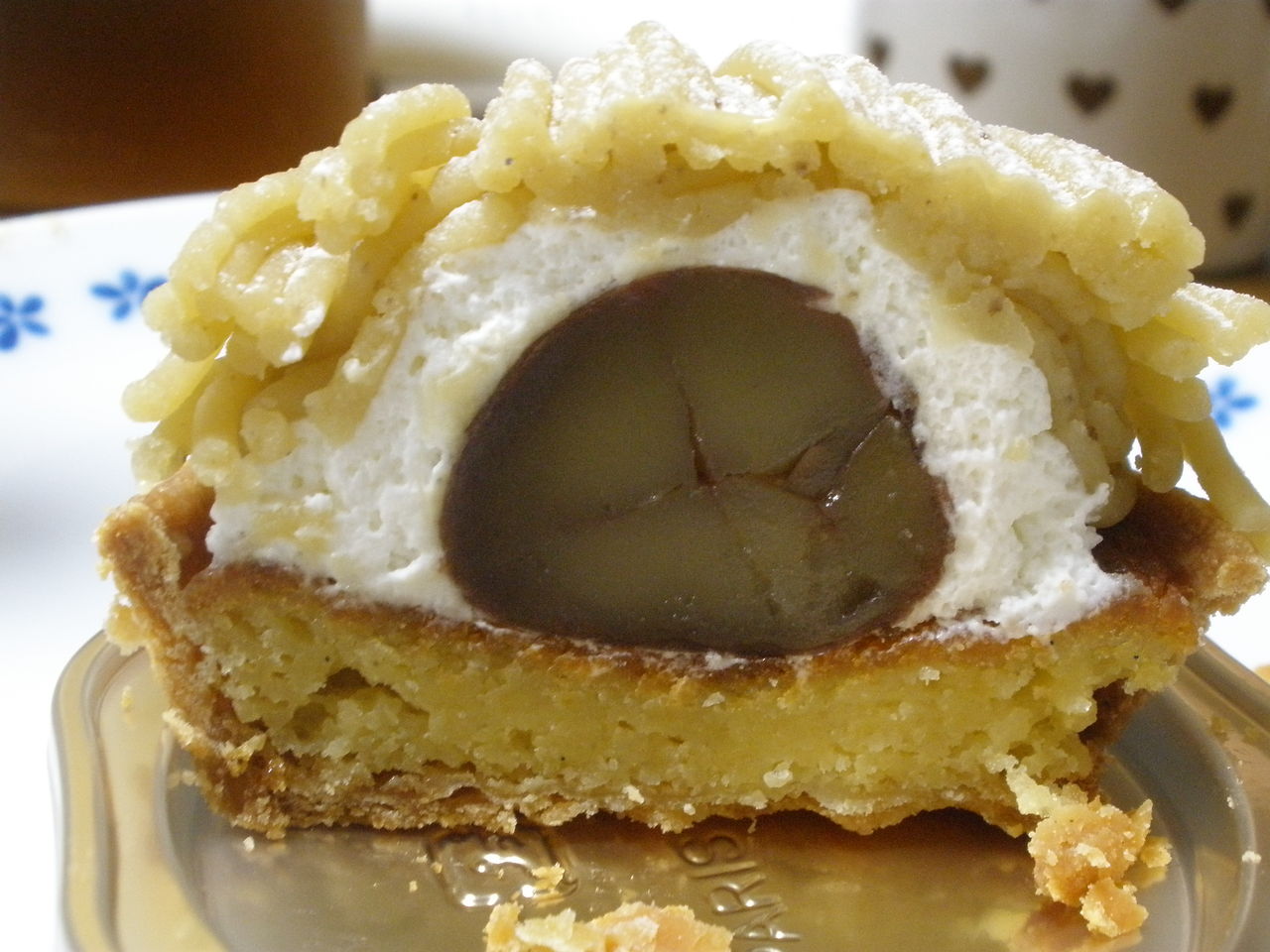 お、栗が丸ごと! なんかうれしい~。カスタードクリームはないけど許す!