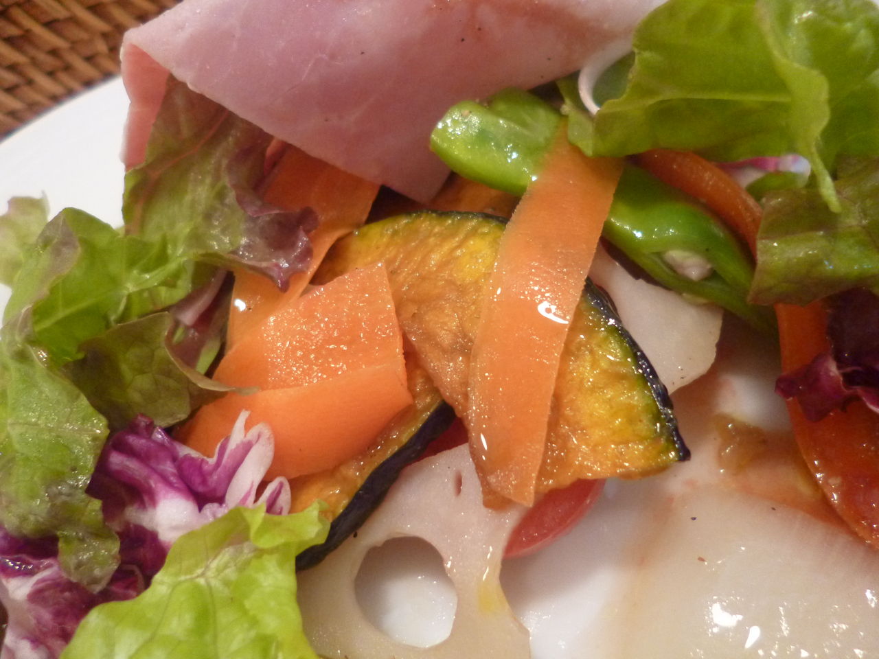 サラダはハムの下にいろんな野菜がかくれてました。