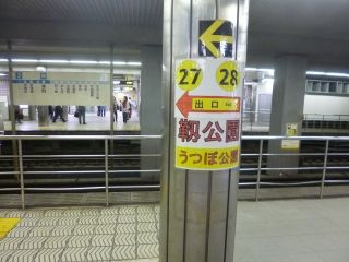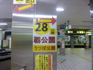 聞く人も多いんでしょうね。あちこちに大きく28番出口の案内が出ています。ほんと・・・四つ橋線のホームも縦断したし、地下鉄の出口までが遠い~!