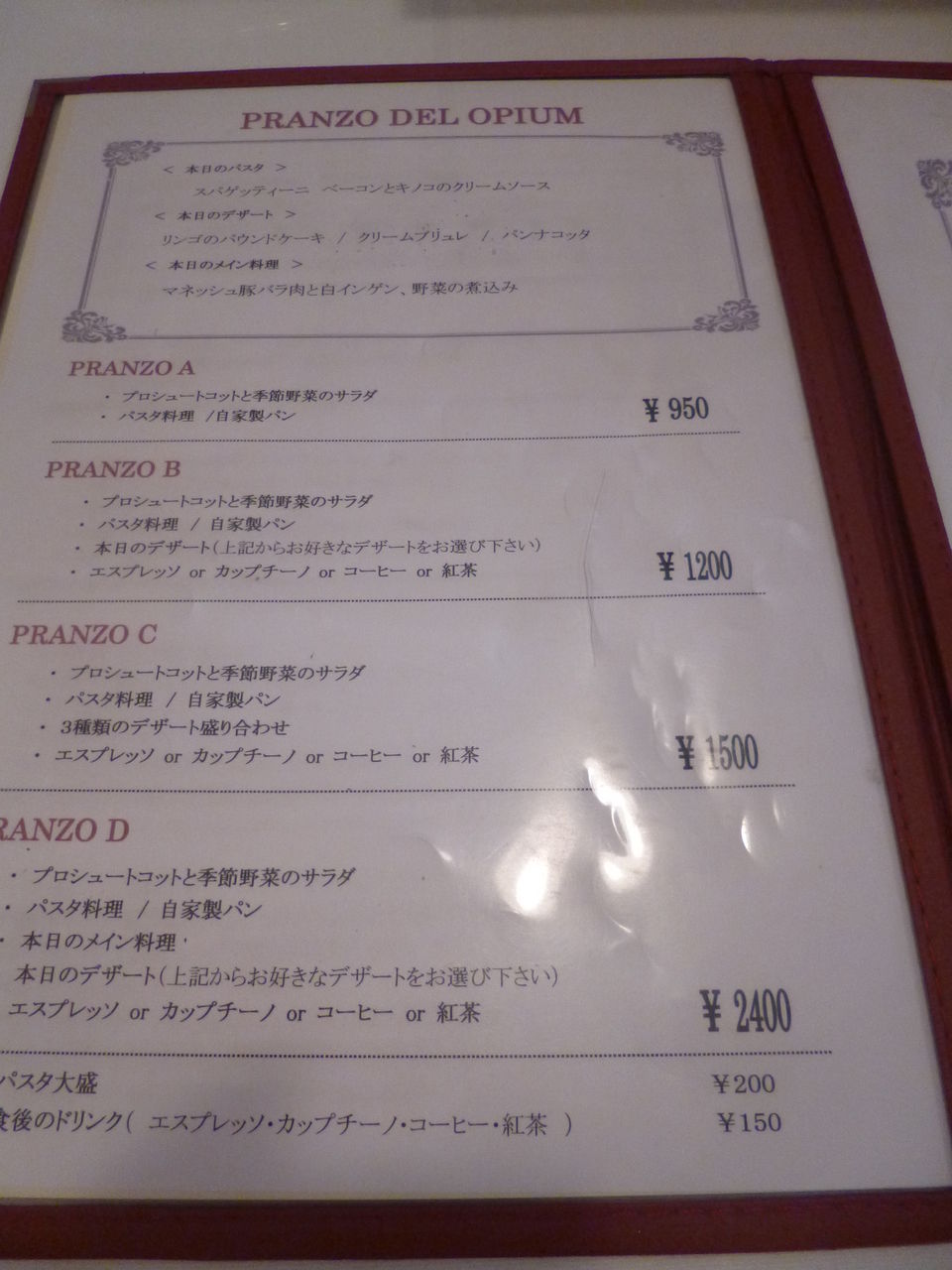 私たちはパスタランチ¥850にドリンク¥150をつけました。