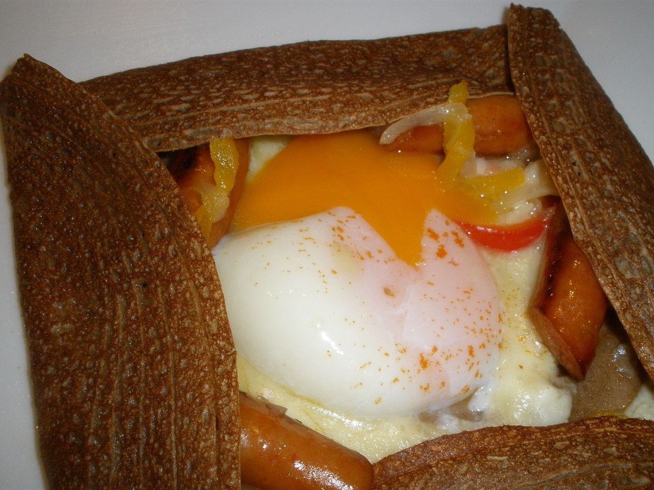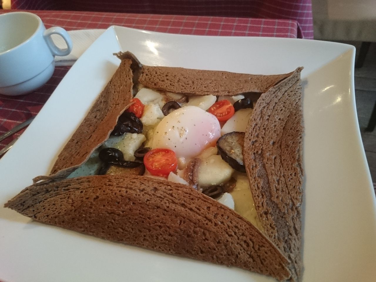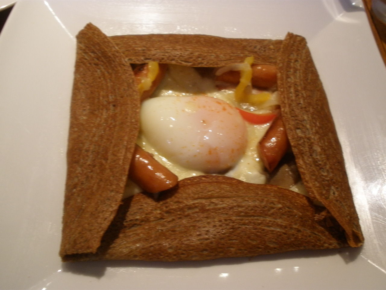 パリッと折りたたまれたたガレットにたまごとチーズをからめて食べたらおいし~い