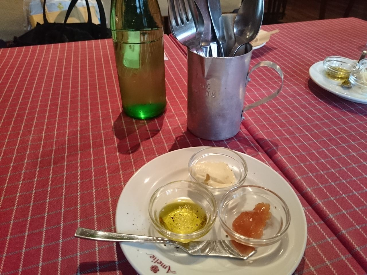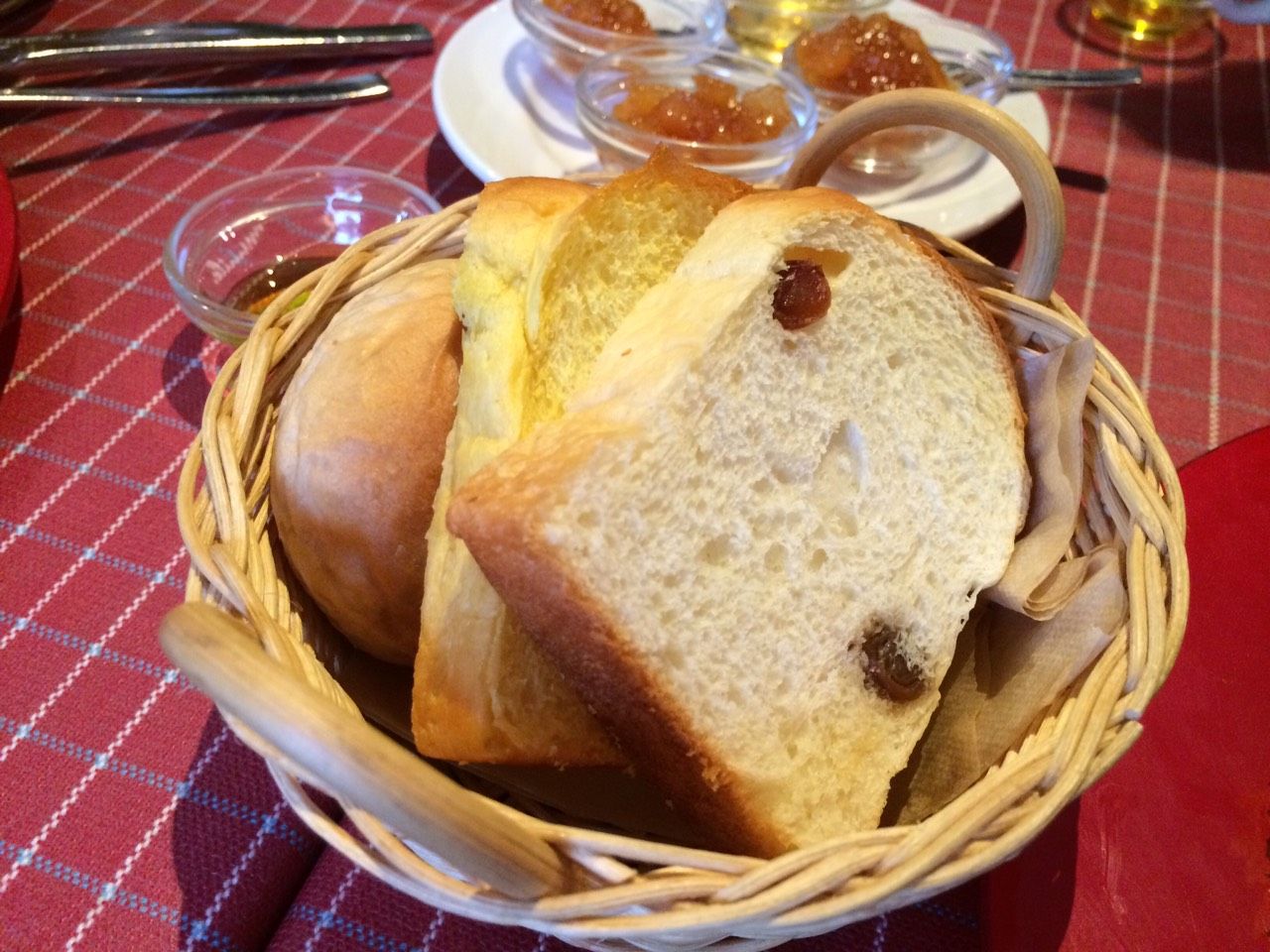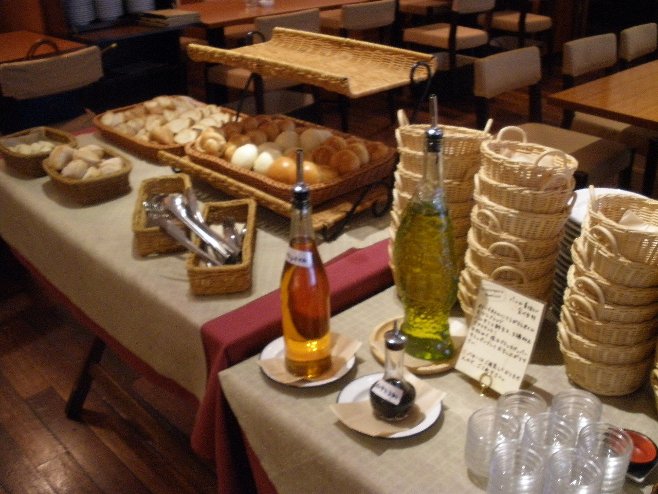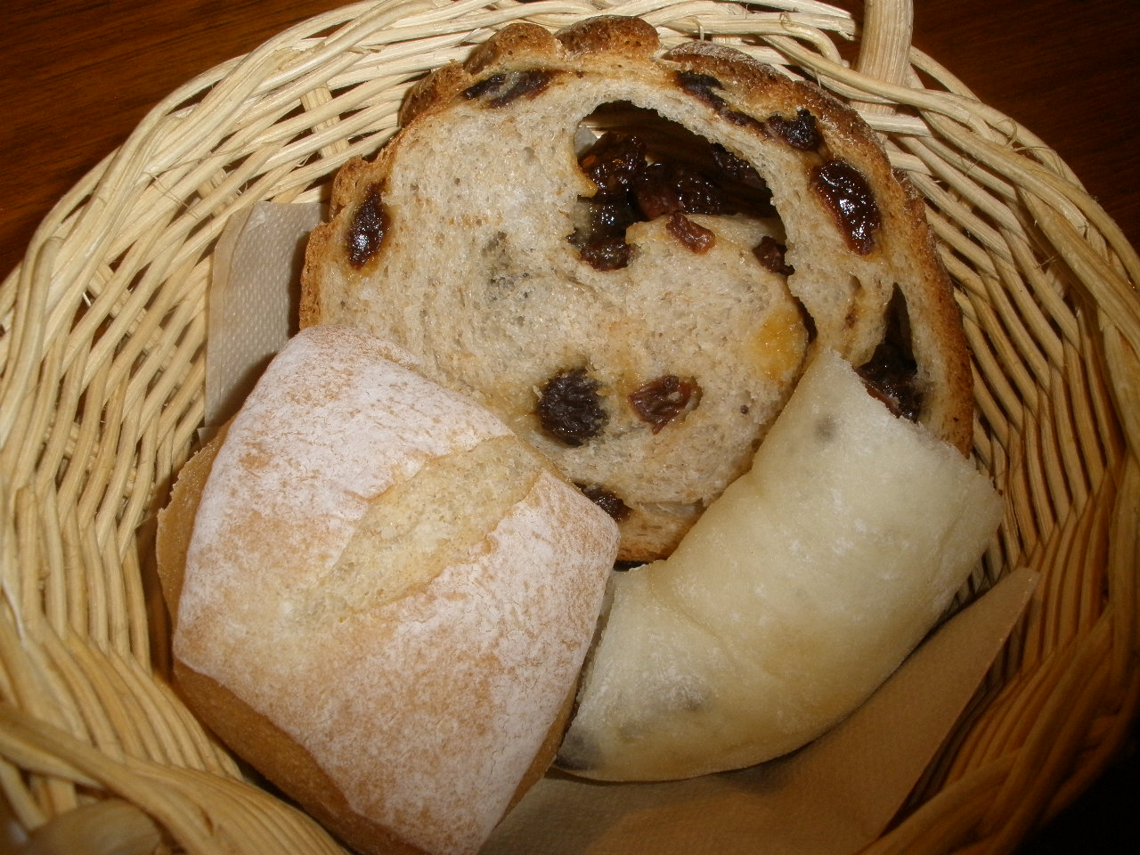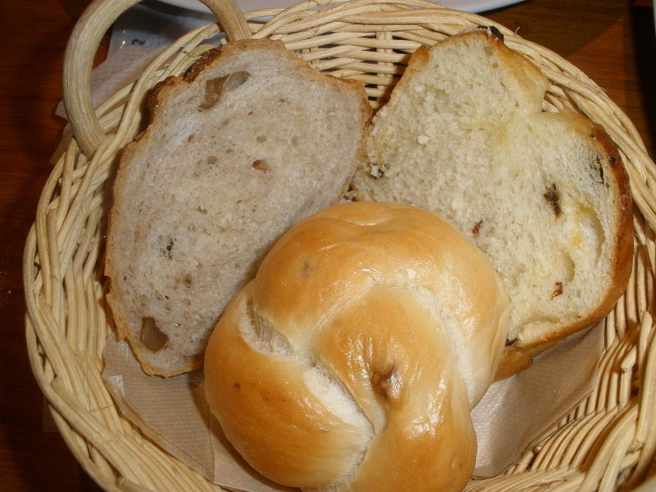 このあと2種類出てきましたが、それで終わり・・・。何年か前に来た時は2段のかごに何種類もあって豊富なパンがおいしくて、それが気に入ってたのに・・・残念。