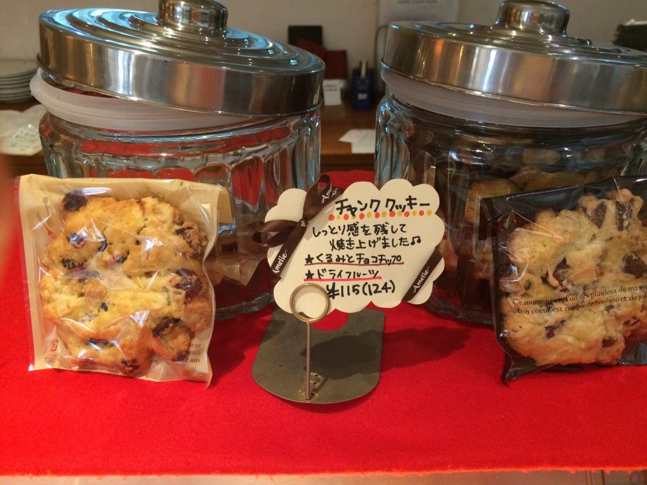 大きな大きなチャンククッキー¥124(税込)。くるみとチョコチップかドライフルーツのどちらかをいただけるそうです