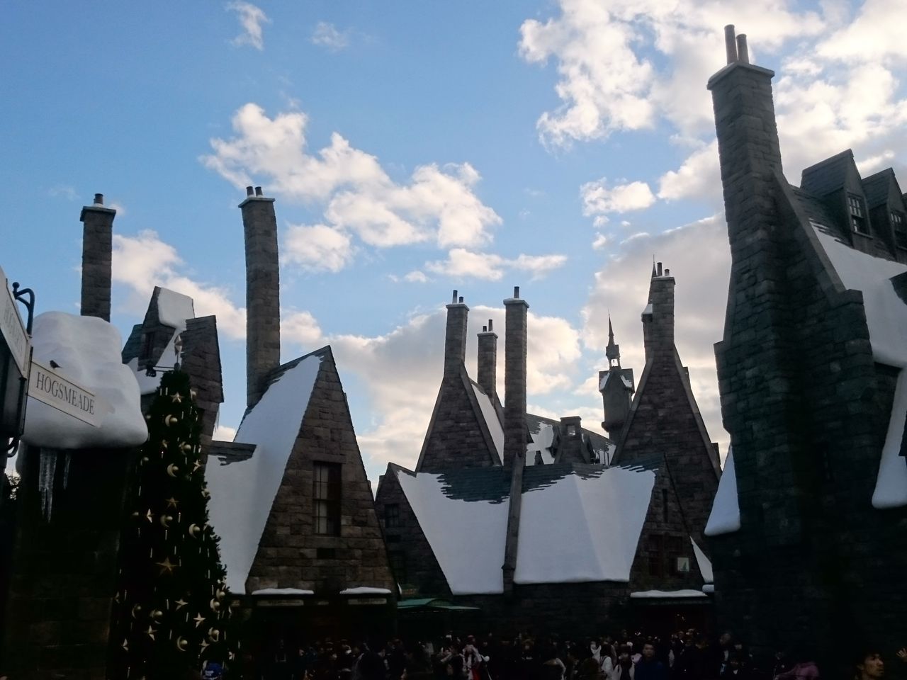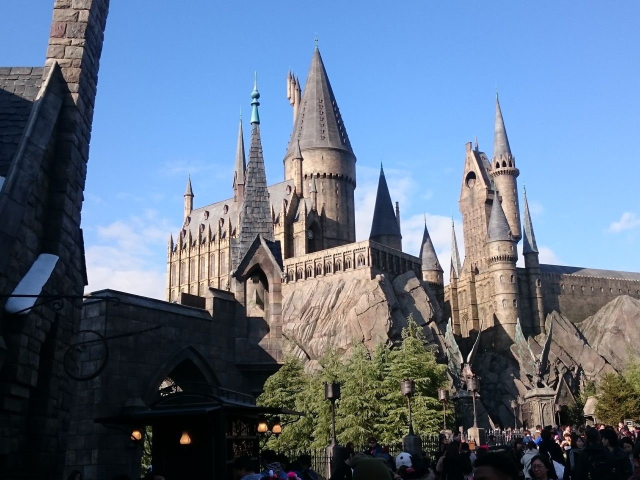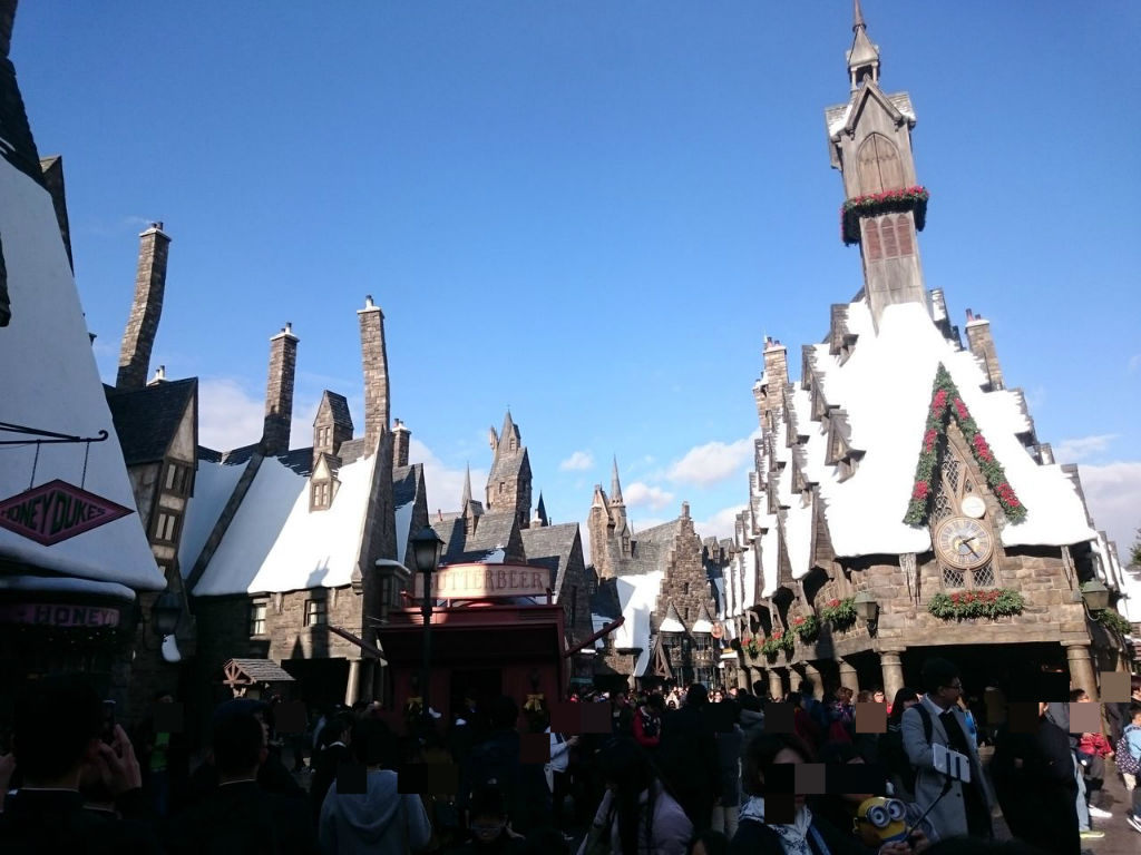 外からもエリア内の道に入ってからも、ホグワーツ城や、ホグズミード村が見えない作りになってます。