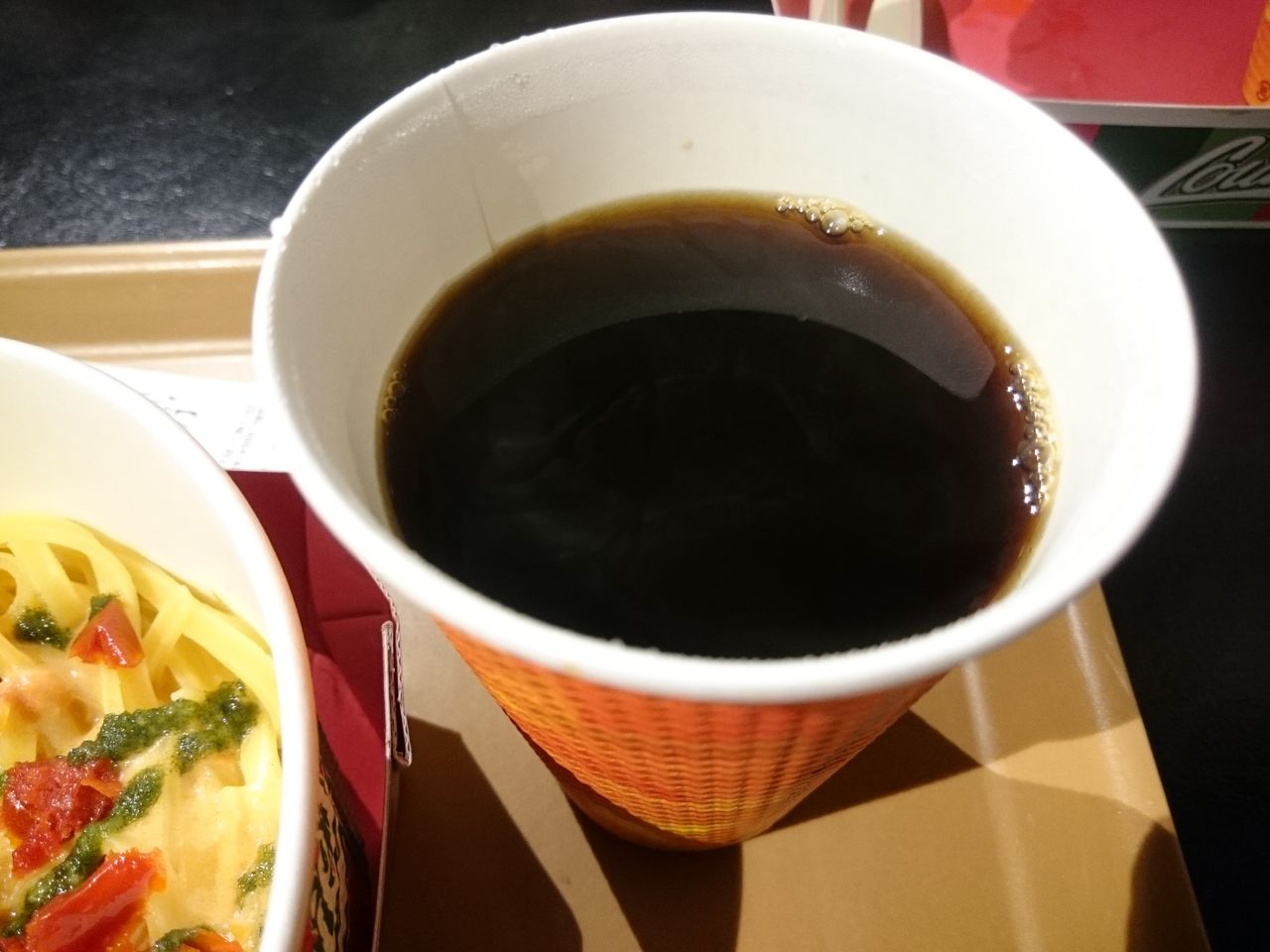 いかにもレンチンパスタという感じではありますが、四角いパスタの食感がおもしろいです。バジルソースがきいていました。