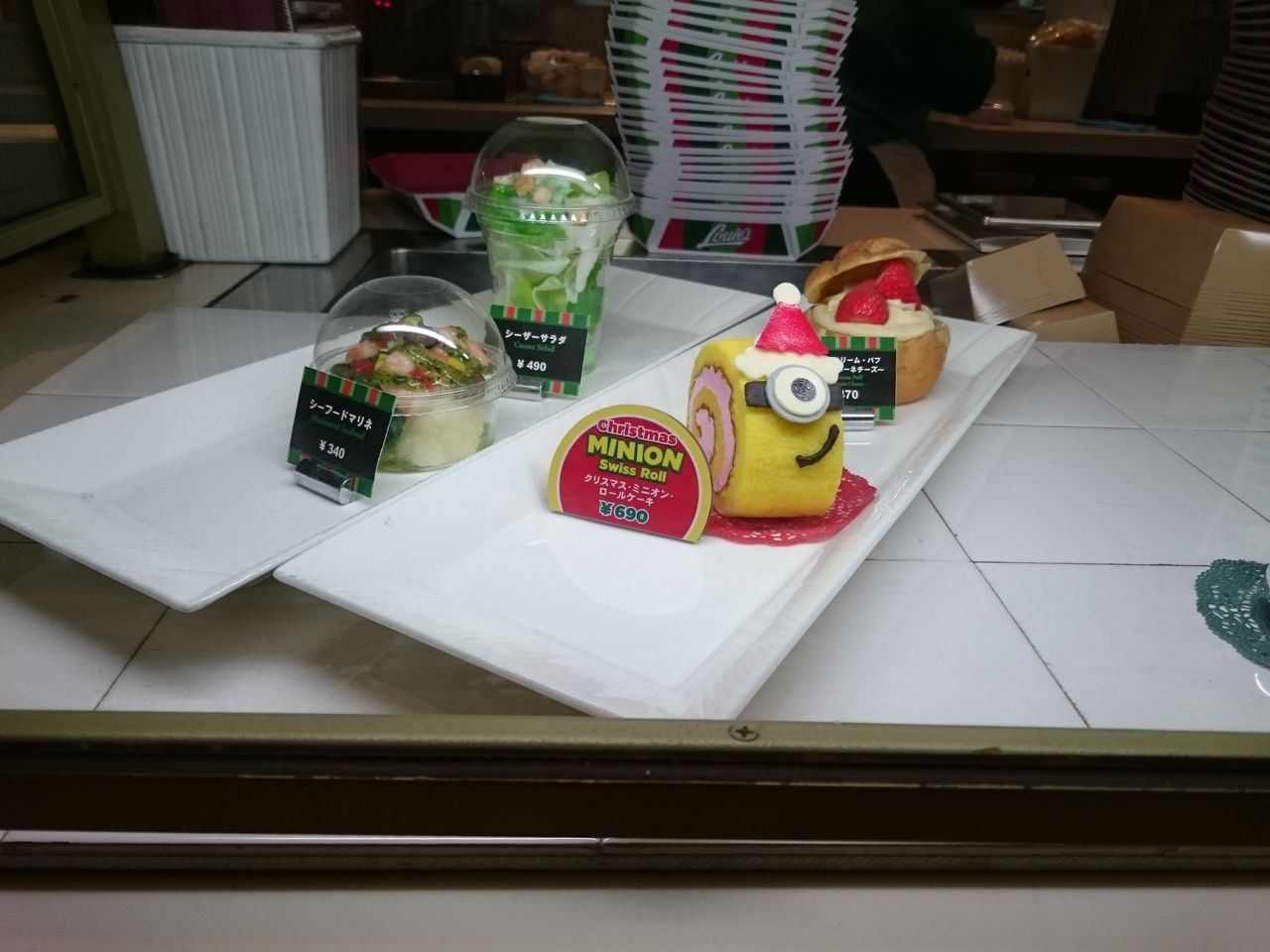 並んでいると、かわいいミニオンのロールケーキもありましたが・・・ここではお昼ご飯だけ!